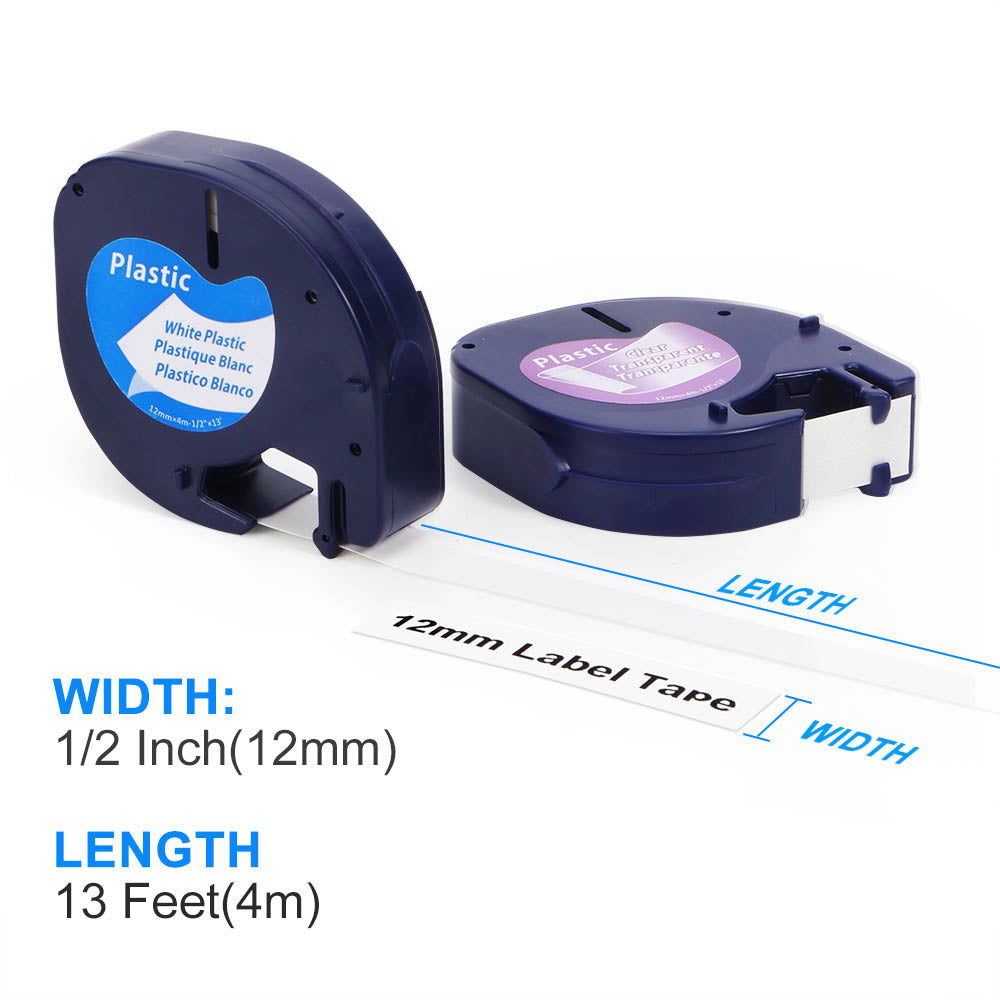 - Perfect Compatibility: Replacement for Dymo letratag refills 12mm x 4m 1/2 x 13 Work with DYMO LetraTag LT-100H, LT-100T, LT-100H Plus, LT-100T Plus, QX50, 200B, XR, XM, 2000 label makers.